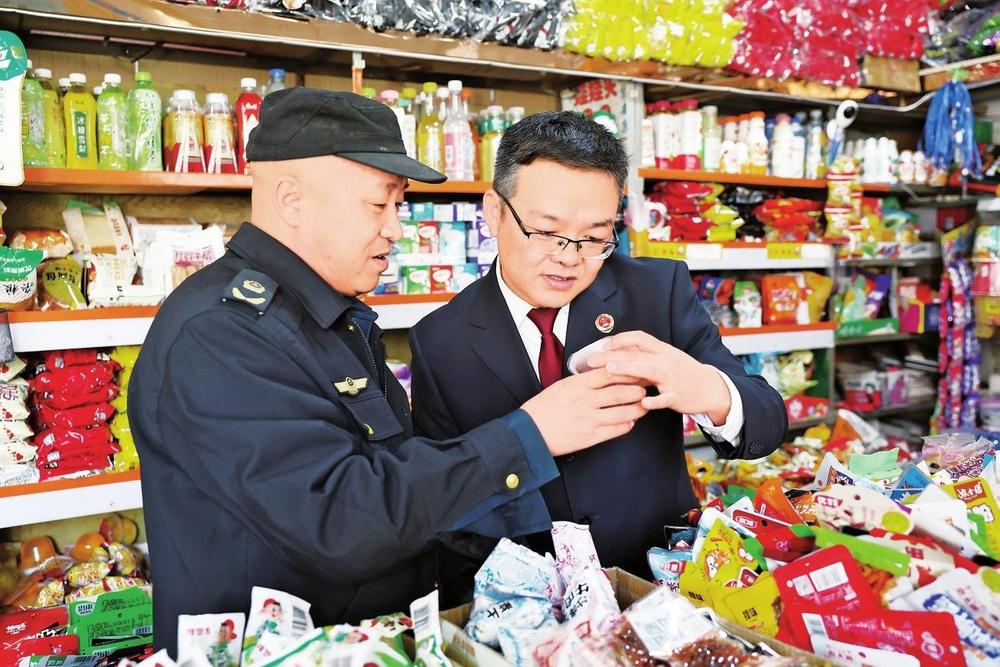民勤縣檢察院聯(lián)合縣市場(chǎng)監(jiān)管局對(duì)校園周邊小賣(mài)部、超市等重點(diǎn)場(chǎng)所開(kāi)展食品安全專(zhuān)項(xiàng)檢查,護(hù)航未成年人健康成長(zhǎng)(2024年3月25日拍攝)。