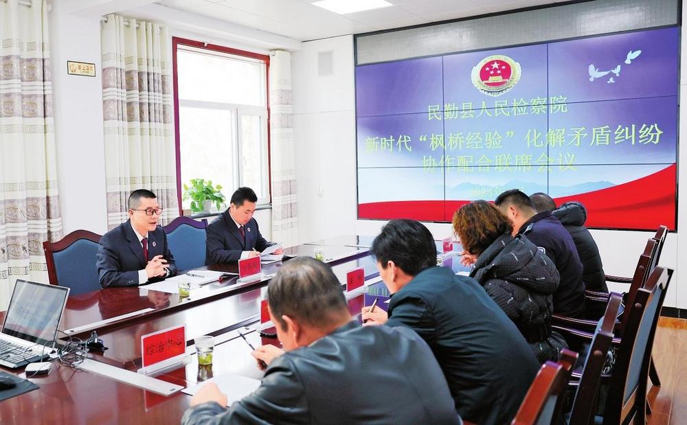 民勤縣檢察院召開(kāi)新時(shí)代“楓橋經(jīng)驗(yàn)”化解矛盾糾紛協(xié)作配合聯(lián)席會(huì)議,用心用力用情化解各類(lèi)矛盾糾紛(2024年3月19日拍攝)。