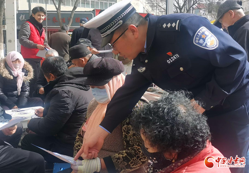 蘭州市公安局交警支隊龔家灣大隊民警走進龔家灣街道龔西路社區(qū),通過“拉家常”與居民“零距離”交流,普及一盔一帶等交通安全常識。