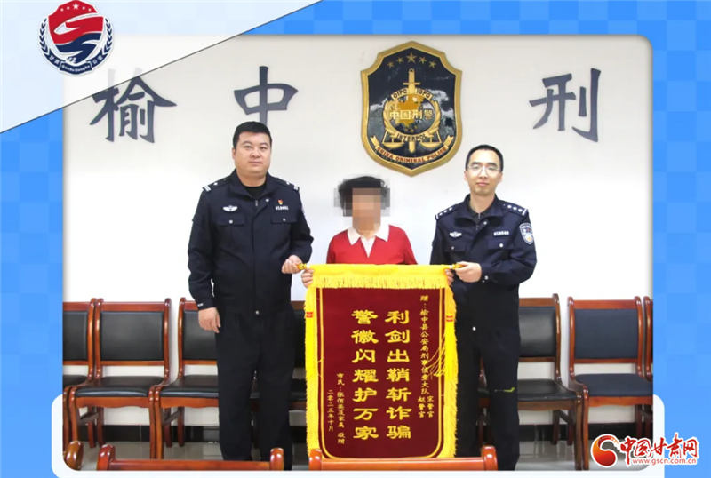 中國甘肅網(wǎng)11月3日訊(西北角·中國甘肅網(wǎng)記者 程?。┙?,蘭州市的張女士將一面印有“利劍出鞘斬詐騙 警徽閃耀護(hù)萬家”的錦旗,送到了榆中縣公安局刑警大隊(duì)辦案民警手中。
