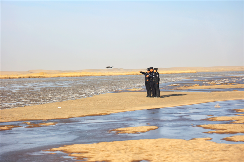 ▲金塔縣公安局城關(guān)派出所民輔警深入轄區(qū)生態(tài)保護區(qū)開展車巡、步巡、無人機巡,構(gòu)建起全域覆蓋、空地聯(lián)動、精準高效的生態(tài)安全防控體系,為織密生態(tài)保護網(wǎng)保駕護航。(葛萬譽 攝)