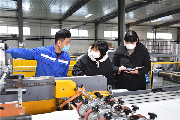 為切實幫助復工復產(chǎn)企業(yè)解決實際困難,安徽省滁州市南譙區(qū)紀委監(jiān)委女干部們組成“巾幗服務隊”,深入企業(yè)生產(chǎn)加工車間,開展調(diào)研走訪,跟進督促政策落實。(安徽省滁州市南譙區(qū)紀委監(jiān)委 孫煒 攝)