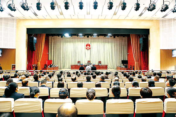 圖為4月21日,蘭州市中級人民法院開庭審理柳豐德受賄、行賄案。 (蘭州市中級人民法院供圖)