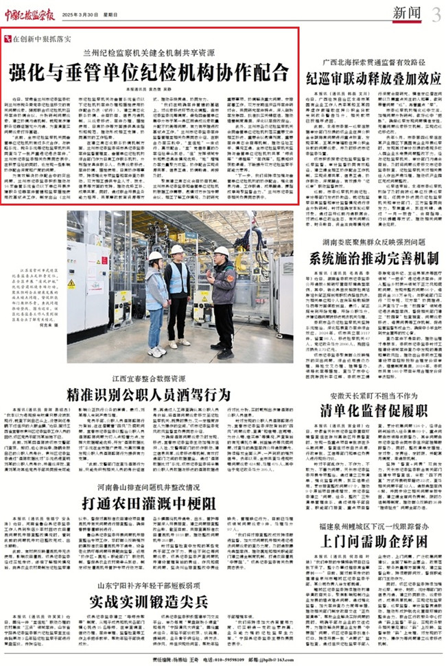 蘭州紀檢監(jiān)察機關健全機制共享資源 強化與垂管單位紀檢機構協(xié)作配合