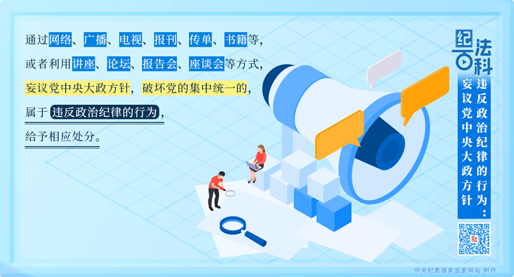執(zhí)紀監(jiān)督中發(fā)現(xiàn),有的黨員、干部“當面不說、背后亂說”“會上不說、會后亂說”“臺上不說、臺下亂說”,對黨中央大政方針說三道四。這些言論擾亂黨員、干部思想,破壞黨的團結統(tǒng)一,妨礙黨中央大政方針的貫徹落實,必須依規(guī)依紀嚴肅處理。