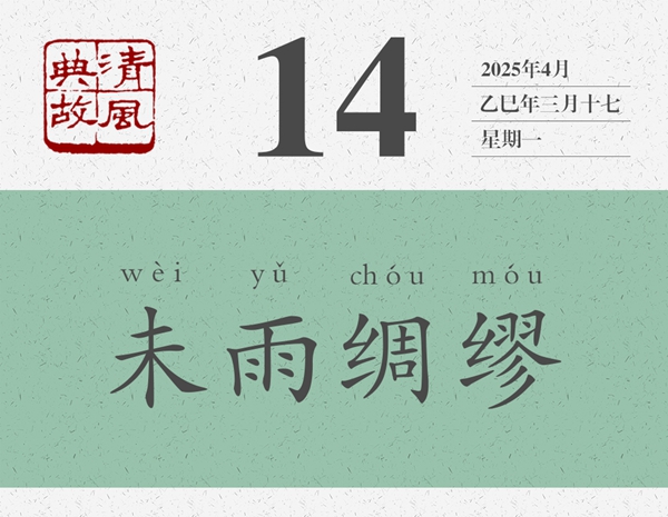 這是一首寓言詩。一般認為,是周武王病故后,弟弟周公旦寫給周武王的兒子周成王的誡勉詩。時成王幼弱,周公旦以詩言志,以鳥為喻,表明自己對周成王的一片苦心,以及對國事的一片忠心。“迨天之未陰雨,徹彼桑土,綢繆牖戶”,便形象地表明了自己的一片苦心。后人遂以“未雨綢繆”為典,比喻凡事都應提前做好準備,以防事到臨頭難以應對。《朱子家訓》:“宜未雨而綢繆,毋臨渴而掘井。”