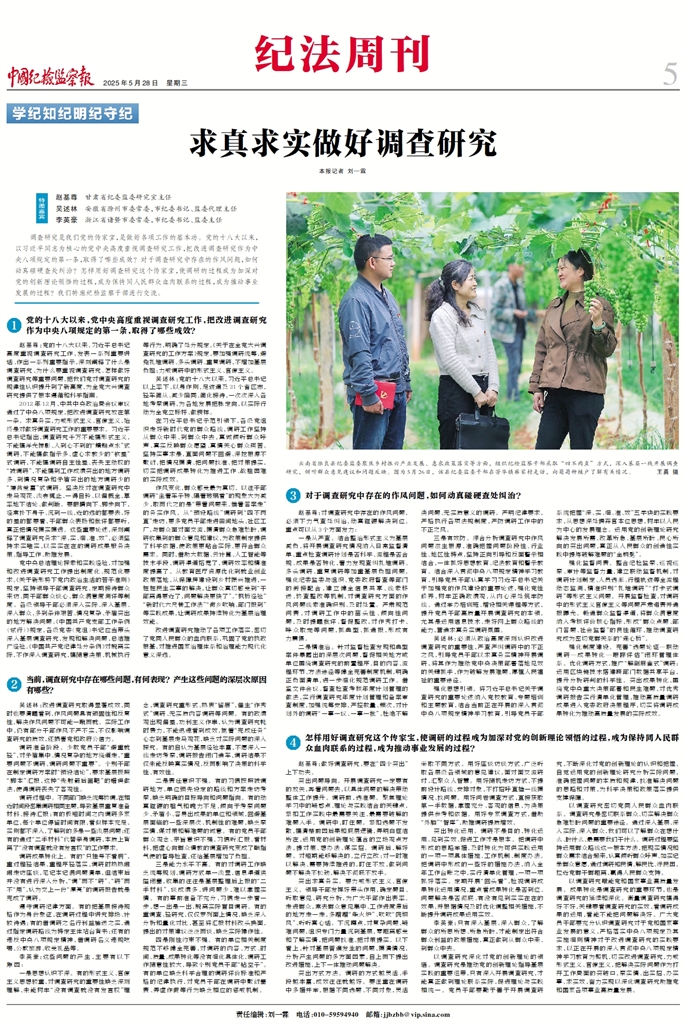 調(diào)查研究是我們黨的傳家寶,是做好各項(xiàng)工作的基本功。黨的十八大以來,以習(xí)近平同志為核心的黨中央高度重視調(diào)查研究工作,把改進(jìn)調(diào)查研究作為中央八項(xiàng)規(guī)定的第一條,取得了哪些成效?對于調(diào)查研究中存在的作風(fēng)問題,如何動真碰硬查處糾治?怎樣用好調(diào)查研究這個傳家寶,使調(diào)研的過程成為加深對黨的創(chuàng)新理論領(lǐng)悟的過程,成為保持同人民群眾血肉聯(lián)系的過程,成為推動事業(yè)發(fā)展的過程?我們特邀紀(jì)檢監(jiān)察干部進(jìn)行交流。