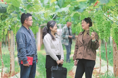云南省陸良縣紀(jì)委監(jiān)委聚焦鄉(xiāng)村振興產(chǎn)業(yè)發(fā)展、惠農(nóng)政策落實(shí)等方面,組織紀(jì)檢監(jiān)察干部采取“四不兩直”方式,深入基層一線開展調(diào)查研究,傾聽群眾意見建議和問題反映。圖為5月26日,該縣紀(jì)委監(jiān)委干部在芳華鎮(zhèn)雍家村走訪,向葡萄種植戶了解有關(guān)情況。王勇 攝
