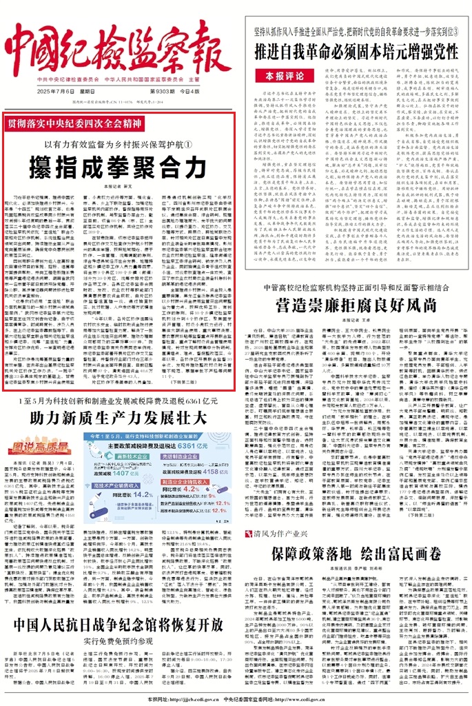 《中國紀(jì)檢監(jiān)察報》2025年7月6日 第1版