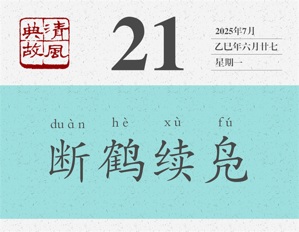 《莊子·駢拇》:“彼正正者,不失其性命之情。故合者不為駢,而枝者不為跂;長者不為有余,短者不為不足。是故鳧(fú)脛雖短,續(xù)之則憂;鶴脛雖長,斷之則悲。故性長非所斷,性短非所續(xù),無所去憂也。”意思是,那所謂的至理正道,就是不違反事物天性的真情。所以說,合在一塊的不算是并生,而旁出枝生的不算是多余;長的不算是多余,短的不算是不足。因此,野鴨的腿雖然很短,續(xù)上一段就成為憂患;野鶴的腿雖然很長,截去一段就會成為悲劇。所以,原本就很長的,是不可以隨意截短的;原本就很短的,也是不可以隨意續(xù)長的,這樣就沒有什么可憂慮的了。