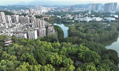 福建省福州市濕地資源豐富,全市濕地面積19.42萬公頃,濕地率15.14%,約占福建省濕地面積的三分之一,位居全國濱海城市前列。圖為近日拍攝的福州西湖——左海濕地公園沿岸城市風(fēng)光。 新華社記者 魏培全 攝