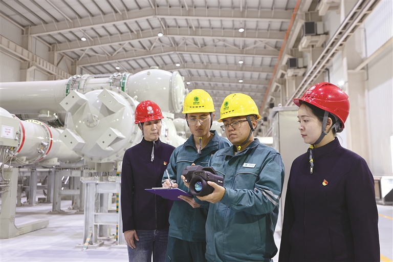 國網(wǎng)寧夏電力有限公司紀委以有力監(jiān)督推動“寧電入湘”特高壓線路工程投運后各項工作平穩(wěn)有序推進。圖為近日,該公司紀委工作人員在國網(wǎng)寧夏超高壓公司中寧換流站開展現(xiàn)場監(jiān)督檢查。王天鵬 攝