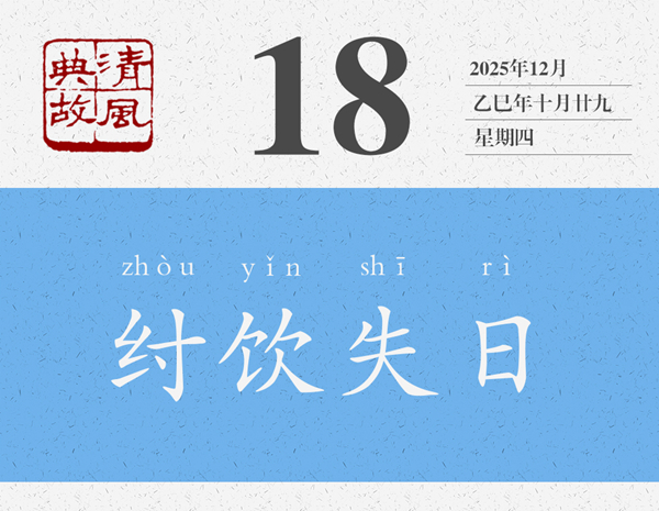 一提起商紂王,大概就會想起沉湎酒色、窮兵黷武、重刑厚斂等等,與之相關(guān)的典故也有酒池肉林、炮烙之刑、牝雞司晨等等。“歡以失日”是他沉湎酒色的又一個故事,往輕處說就是酒醉失憶了,往重處說就是把一切都拋到九霄云外了。箕子,即子胥余,商紂王的叔父,官至太師,封于箕,故稱箕子,“殷末三仁”之一,《論語·微子》曰:“微子去之,箕子為之奴,比干諫而死,殷有三仁焉。”箕子曾多次勸諫紂王,但紂王不聽,他心灰意冷,索性披發(fā)佯狂,紂王見此,以為箕子真瘋了,遂將他囚禁起來,貶為奴隸。有了這個背景,就知道箕子為什么要“辭以醉而不知”了。后世則以“紂飲失日”為典,形容生活荒唐混亂,也用來形容不辨時間。黃遵憲詩《倫敦大霧行》:“蒼天已死黃天立,倒海翻云百神集。一時天醉帝夢酣,舉國沉迷同失日。”