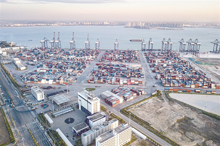 圖為在海南洋浦經(jīng)濟開發(fā)區(qū)拍攝的洋浦港口岸,其既是海南自貿(mào)港8個對外開放口岸之一,又是10個“二線口岸”之一。新華社記者 蒲曉旭 攝