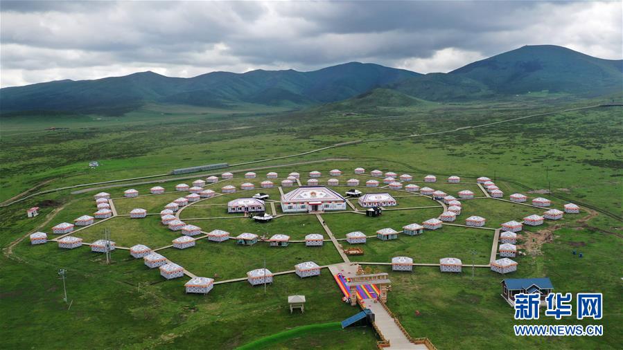 這是6月20日拍攝的甘南藏族自治州碌曲縣尕海鎮(zhèn)尕秀村帳篷城景區(qū)(無人機照片)。 新華社記者 陳斌 攝