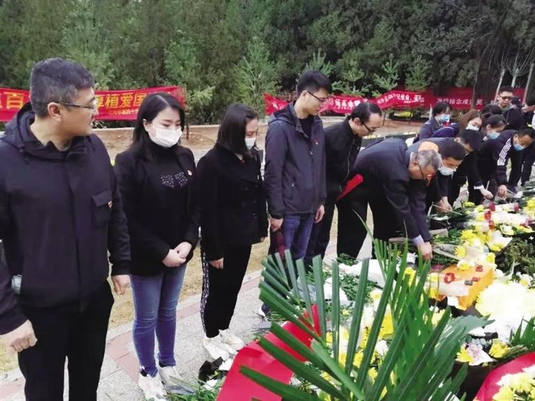 近日,市人社局直屬機關黨委組織60余名黨員干部在蘭州烈士陵園開展“緬懷戍邊英雄·傳承紅色基因”為主題的清明祭掃活動。 在“衛(wèi)國戍邊英雄”陳紅軍烈士悼念廣場,黨員們?yōu)橛⑿劬传I了花籃。