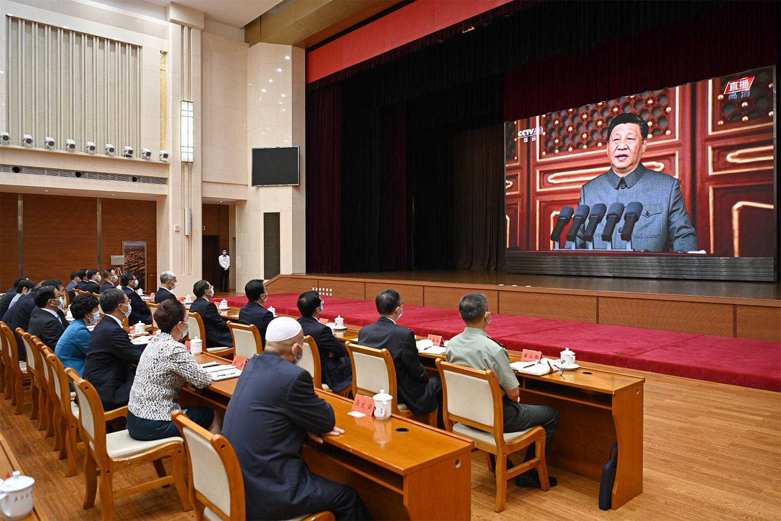 尹弘、任振鶴、歐陽堅(jiān)、孫偉、馬廷禮、劉昌林、胡焯、李元平、王嘉毅、石謀軍、蒲永能、朱天舒,嘉木樣·洛桑久美·圖丹卻吉尼瑪、馬青林、陳克恭、吳明明,張世珍、李沛興、何偉、余建、程曉波、劉長(zhǎng)根、張錦剛,陳青、德哇倉、馬文云、王銳、郭承錄、康國(guó)璽、尚勛武、贠建民、郭天康、霍衛(wèi)平、袁占亭,張海波、朱玉,馬小潔,以及李德新、李志勛、王建太參加收看。