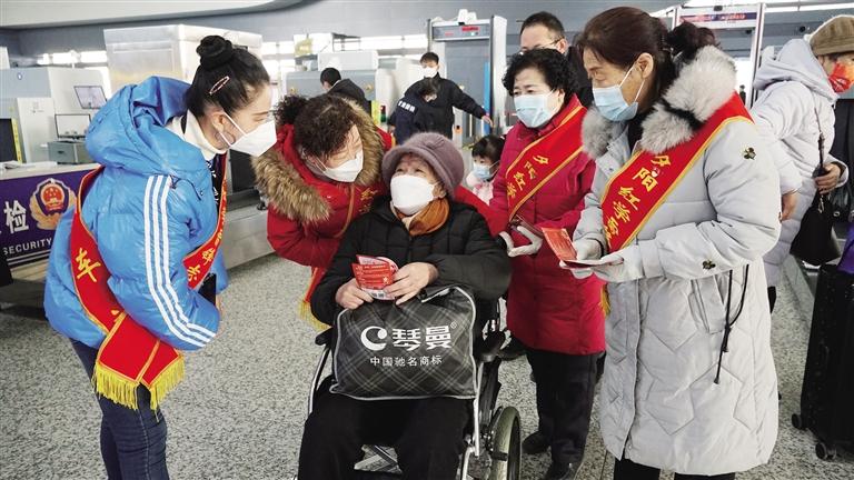 在候車廳里,蘭州西站黨團(tuán)員,發(fā)放春運期間列車開行變化、購票日歷、疫情防控等相關(guān)內(nèi)容“一卡通”服務(wù)卡片,為旅客提供便民咨詢、候車區(qū)域引導(dǎo)、重點旅客幫扶等,切實為節(jié)前旅客送溫暖、獻(xiàn)愛心。同時,候車廳設(shè)置“馨路同行”行李搬運服務(wù)崗,黨團(tuán)員為行動不便、攜帶行李較多旅客推送行李至車廂,開展暖冬志愿服務(wù),讓旅客回家的路更溫暖、更順暢。