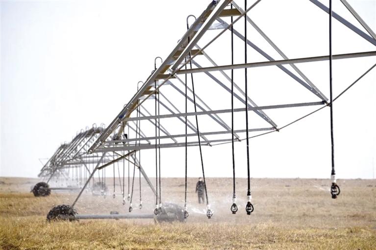 在農(nóng)投集團(tuán)現(xiàn)代牧草休閑示范園項(xiàng)目,平整一新的2.3萬(wàn)畝土地上,3組大型噴灌設(shè)備已經(jīng)投入緊張的工作中,隨著工作人員啟動(dòng)設(shè)備,噴灌機(jī)所過(guò)之處土地一片濕潤(rùn),空氣中充滿了泥土的清新。據(jù)現(xiàn)場(chǎng)負(fù)責(zé)人介紹,連續(xù)幾日,他們都在緊鑼密鼓開展春灌工作,利用大型噴灌設(shè)備,不僅實(shí)現(xiàn)了水資源的高效利用,而且減少了人力投入,工作效率更高。