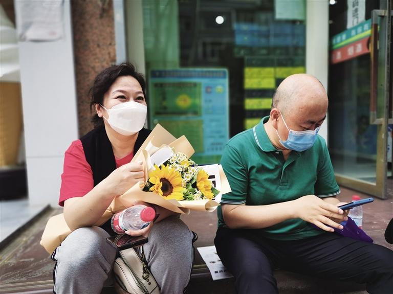 記者在等待的家長(zhǎng)群里來回穿梭,發(fā)現(xiàn)給孩子送鮮花的家長(zhǎng)可真不少,上前攀談,手捧向日葵的媽媽爽朗大方,她向記者解釋了送孩子向日葵的寓意:“我家的孩子是女孩,是蘭州一中的學(xué)生,我希望她考個(gè)好成績(jī)。向日葵的寓意就是‘一舉奪魁’。我們很緊張但是不敢表露出來,不能把這種情緒傳導(dǎo)給孩子。送她花,就是為了讓她心情好一些。”