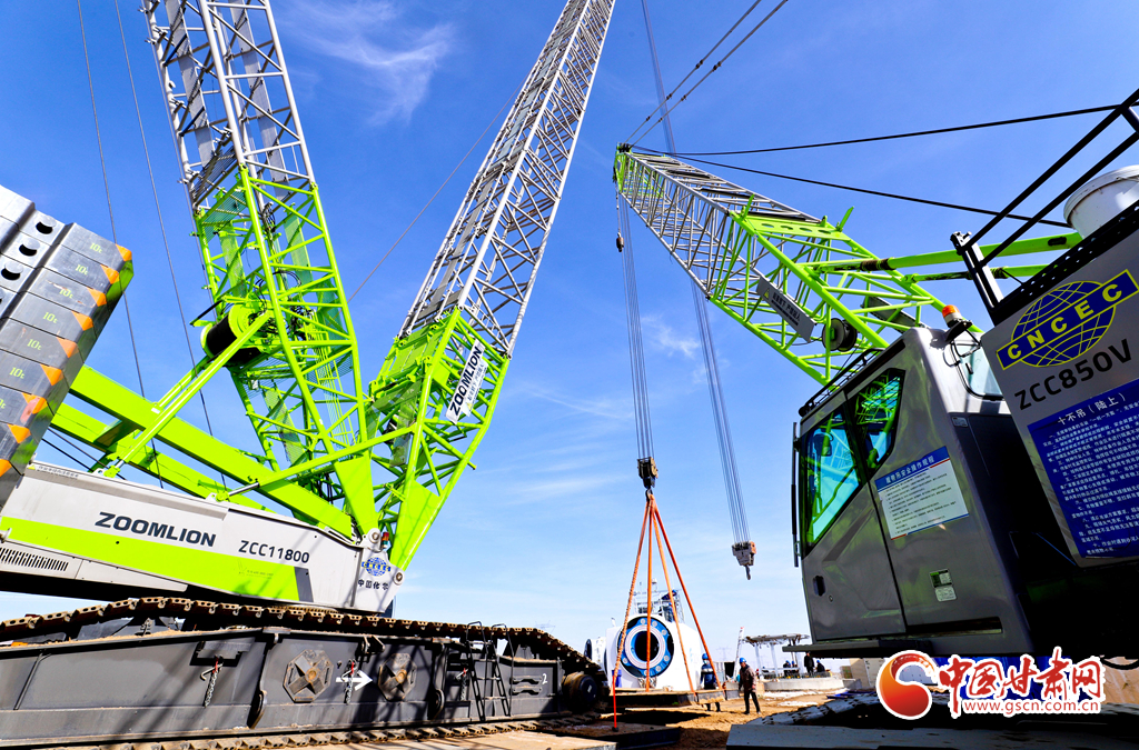 2月21日,張掖市臨澤縣平川北灘30萬千瓦風(fēng)電項(xiàng)目建設(shè)現(xiàn)場(chǎng),工作人員正在進(jìn)行主機(jī)吊裝。