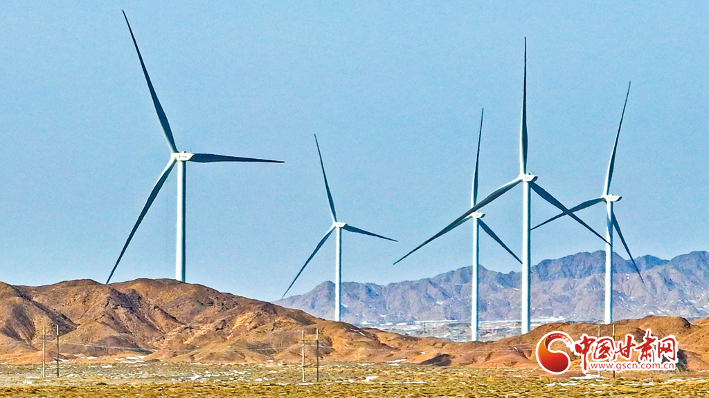 2月21日,張掖市臨澤縣平川北灘30萬千瓦風(fēng)電項(xiàng)目建設(shè)現(xiàn)場(chǎng),已建成的風(fēng)電機(jī)組。