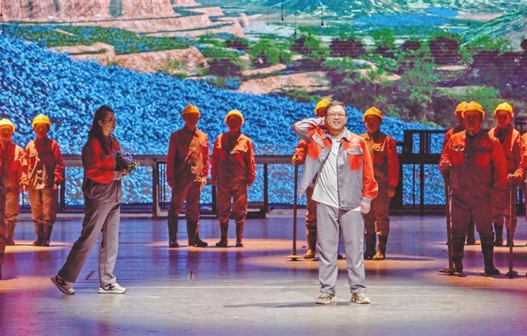 在兩個小時的演出中,全體演職人員以群像式表演,將蘭渝鐵路建設者的科技創(chuàng)新精神、愚公移山精神、大國工匠精神完美展現(xiàn)在舞臺上。“那座山,不太高,胡麻花開山上頭,山根根,開洞洞,火車鉆進山里頭……”伴隨著悠揚的謝幕音樂,劇場內(nèi)爆發(fā)出了經(jīng)久不息的熱烈掌聲。