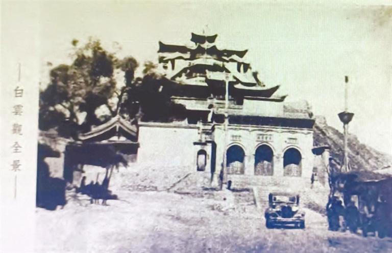 1935年5月,邵元沖考察西北途經(jīng)蘭州,專程赴崔家崖白云觀參訪?!段鞅彪S軺記》載:“依極壽山麓,建白云觀,高三百余級(jí),黃流襟帶,榆柳成蔭,書(shū)長(zhǎng)無(wú)事,凝坐其間,聆水聲潺湲,聽(tīng)鳥(niǎo)語(yǔ)啾啁,亦足滌塵煩,消炎夏。”邵元沖為此特作《題崔家崖白云觀》詩(shī)曰:“玄都峙重崖,清磬林間響。俯瞰大河橫,寒流走混□。柳晚翠煙浮,閑云獨(dú)來(lái)往。”《西北攬勝》一書(shū)中,專門刊載兩幅崔家崖白云觀照片,照片說(shuō)明曰:“北臨黃河,南接蘭山,形勢(shì)雄壯,殿宇倚坡上筑,宏麗精巧,且曲徑回廊,引人入勝,亦蘭垣名勝之一也。” 從老照片中可見(jiàn),崔家崖白云觀依山而建,頗具氣勢(shì),而且交通便利,邵元沖一行乘坐的小汽車可以直達(dá)觀前。