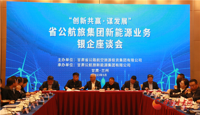 會上,甘肅公航旅集團新能源公司黨委書記、董事長楊永明與參加座談會的銀行簽署了《銀企合作備忘錄》,雙方達成新能源方面授信額度600億元。
