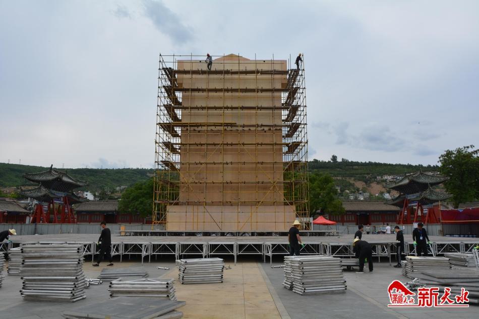 天水市文化旅游投資發(fā)展有限責(zé)任公司總經(jīng)理景延峰告訴記者,他們主要負(fù)責(zé)公祭伏羲大典文化豐碑的搭建以及伏羲廣場(chǎng)周邊和外圍環(huán)境的美化和亮化工程。5月12日開始進(jìn)場(chǎng)施工,目前伏羲文化豐碑主體已經(jīng)搭建完成,各項(xiàng)工作都在有序推進(jìn)。下一步將進(jìn)行豐碑文化浮雕的安裝,伏羲路四個(gè)花籃的修復(fù)和裝飾、美化,道旗和舞臺(tái)的重新翻修,以及鮮花布置等工作,預(yù)計(jì)所有工作在6月15日全部完成到位。
