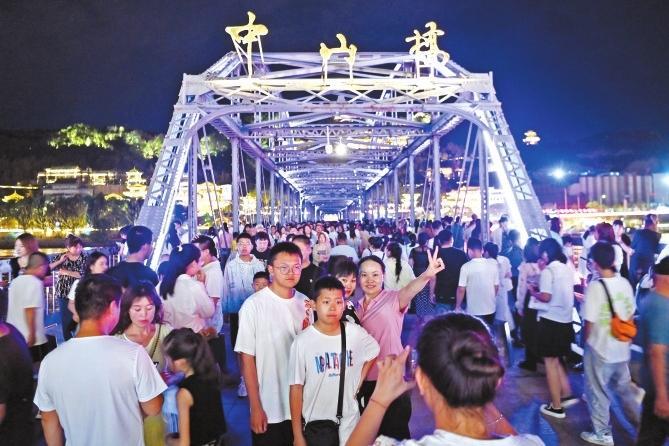 入夏以來,全國各地?zé)崂艘u人,但絲路重鎮(zhèn)蘭州以23-26℃的平均氣溫成為各地游客消夏避暑勝地,外來游客涌入金城,尤其是暑假期間呈現(xiàn)出井噴式增長。依托中山橋、白塔山、黃河母親、黃河樓等重要旅游景點資源,黃河之濱成為外來游客打卡首選,“夜游黃河”“黃河頌·大有蘭州”光影秀火爆出圈,沿河茶攤、休閑茶吧、露營基地更是出現(xiàn)“一桌難求”的現(xiàn)象。