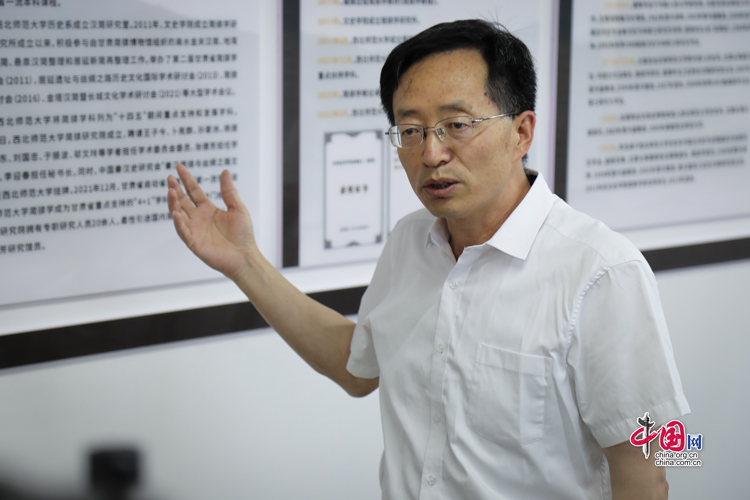 7月31日,西北師范大學歷史文化學院教授李迎春接受“簡牘中國”媒體團的采訪。中國網(wǎng)記者 鄭偉 攝