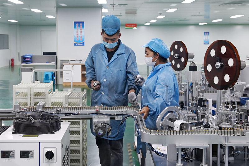 位于金昌經濟技術開發(fā)區(qū)的甘肅金宏翔新能源有限公司,工人在電池生產線上作業(yè)。記者 范培珅 攝
