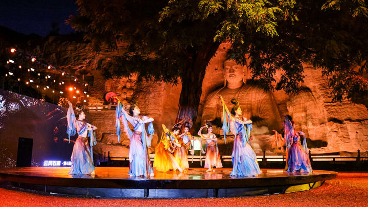 在山西云岡石窟,一場(chǎng)名為“又見云岡”的大型實(shí)景演出上演,1000余人現(xiàn)場(chǎng)觀看,近100萬人線上觀看,人們被經(jīng)由現(xiàn)代藝術(shù)演繹的傳統(tǒng)文化之美所打動(dòng)。