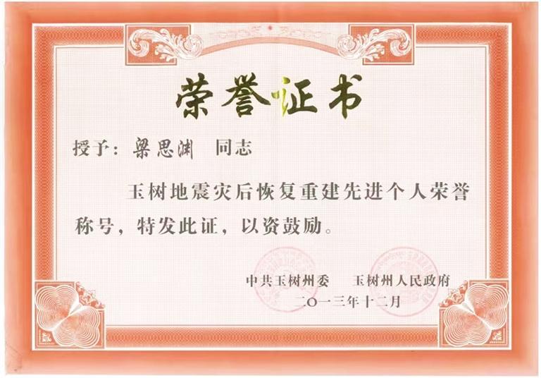 他一直這樣嚴(yán)于要求自己。因在格薩爾王賓館地震遺址維修保護(hù)項(xiàng)目中作出突出貢獻(xiàn),梁思淵被玉樹(shù)州委、州政府評(píng)為“玉樹(shù)地震災(zāi)后恢復(fù)重建先進(jìn)個(gè)人”。疫情期間,他主動(dòng)請(qǐng)纓,參與雁南路街道防疫物資運(yùn)輸保障任務(wù),轉(zhuǎn)運(yùn)物資總計(jì)150多趟次。
