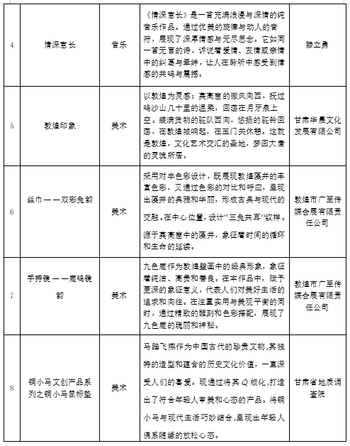 2024年6月,甘肅版權(quán)綜合服務(wù)平臺共完成省內(nèi)作品登記804件,其中文字作品235件、美術(shù)作品469件、攝影作品9件、音樂作品39件、視聽作品20件、口述作品8件、其他作品24件。經(jīng)認(rèn)真組織篩選,并經(jīng)著作權(quán)人同意,現(xiàn)公開推薦以下10件優(yōu)秀作品,歡迎社會各界交流合作。(聯(lián)系方式:0931-8270727)