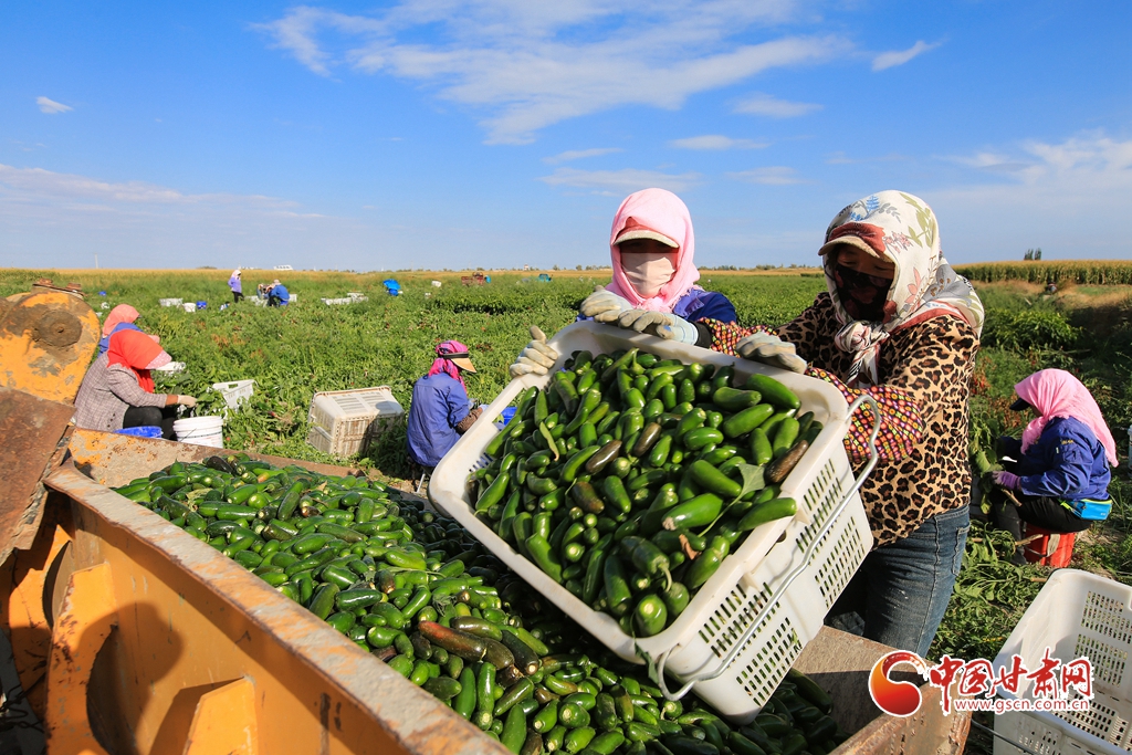 9月1日,嘉峪關(guān)市新城鎮(zhèn)長城村一農(nóng)民專業(yè)合作社種植的子彈頭辣椒喜獲豐收,種植戶搶抓農(nóng)時采摘,農(nóng)用機(jī)械車輛穿梭于田間地頭,鄉(xiāng)村田野呈現(xiàn)出一派繁忙的景象。
