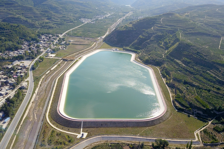這是在天水市拍攝的已投用的天水城區(qū)引洮供水工程楊家灣調蓄水池(無人機照片)。新華社記者范培珅攝
