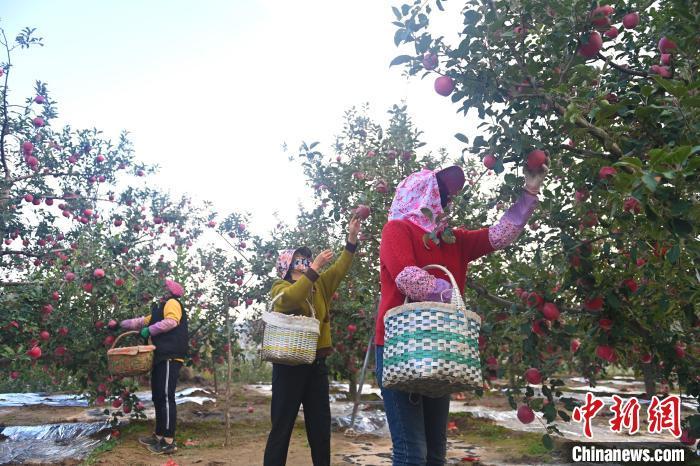 10月21日,在甘肅省天水市秦安縣一果園內(nèi),果農(nóng)進行蘋果采收工作。中新社記者李亞龍攝