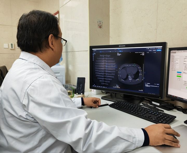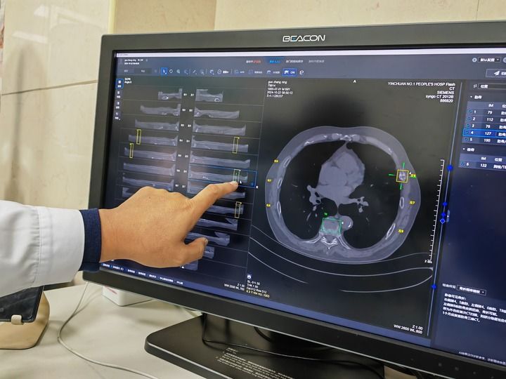 在寧夏回族自治區(qū)銀川市第一人民醫(yī)院,放射科副主任醫(yī)師姜榮興打開電腦上的人工智能輔助診斷系統(tǒng),導入病患CT影像資料后,輕點鼠標,系統(tǒng)瞬間完成初篩——24根肋骨逐一呈現(xiàn)在屏幕上,骨折和疑似骨折的部位一目了然。醫(yī)生再對初篩結(jié)果作出診斷處理,全程用時不到4分鐘。