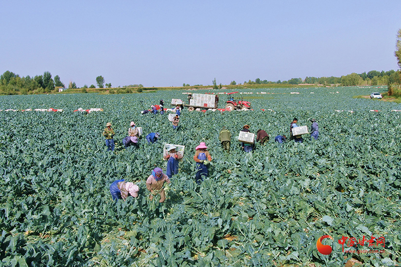 在蓼泉鎮(zhèn)絲路綠洲蔬菜分揀加工包裝配送生產(chǎn)線上,20余名工人正有序地對(duì)新鮮西藍(lán)花進(jìn)行去葉、清洗、裝箱、加冰等處理。這些經(jīng)過精加工的蔬菜即將發(fā)往南方沿海城市,成為千里之外消費(fèi)者餐桌上的美味。
