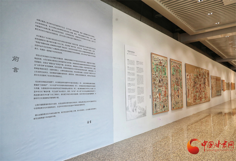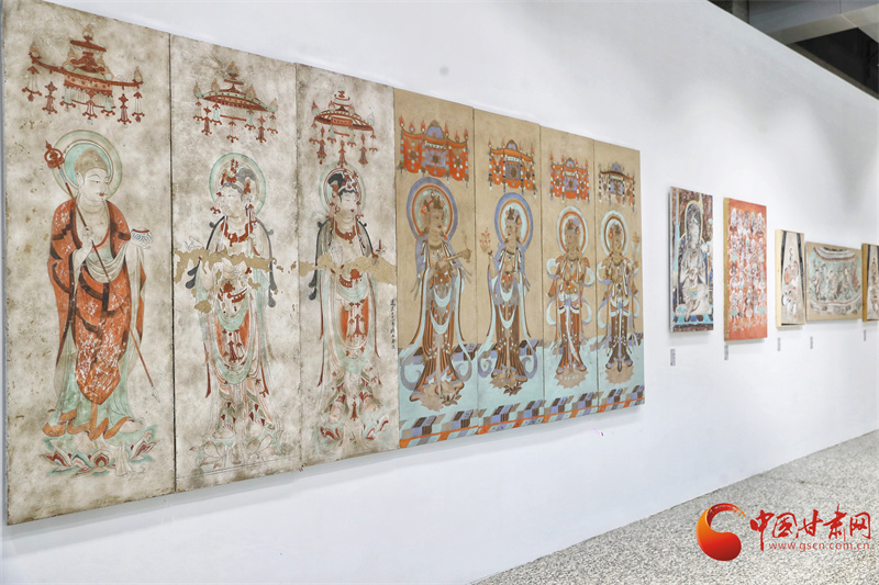 第八屆敦煌文博會(huì)“絲路華彩·盛世華章——敦煌及絲路沿線地區(qū)石窟寺壁畫(huà)藝術(shù)傳播與展示”專展,西北師范大學(xué)敦煌學(xué)院馬寶團(tuán)隊(duì)帶來(lái)了絲路沿線34個(gè)石窟寺壁畫(huà)臨摹作品,以及流失海外的壁畫(huà)精品臨摹作品,系統(tǒng)梳理了以河西走廊石窟群為代表的絲綢之路沿線石窟壁畫(huà)藝術(shù),讓全世界的觀眾可以更直接參觀熠熠生輝的絲綢之路經(jīng)典壁畫(huà)。