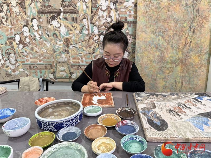10月31日,由中央網(wǎng)信辦網(wǎng)絡(luò)傳播局、國家文物局政策法規(guī)司指導(dǎo),中國互聯(lián)網(wǎng)發(fā)展基金會特別支持,甘肅省委網(wǎng)信辦、省文物局主辦,張掖、嘉峪關(guān)、酒泉市委網(wǎng)信辦與敦煌研究院、中國甘肅網(wǎng)、鳳凰網(wǎng)甘肅頻道共同承辦的“何以中國|壁畫里的中國·當(dāng)AI遇見小飛天”網(wǎng)絡(luò)主題宣傳活動采訪了敦煌石粉彩繪技藝的非遺傳承人王亞林。