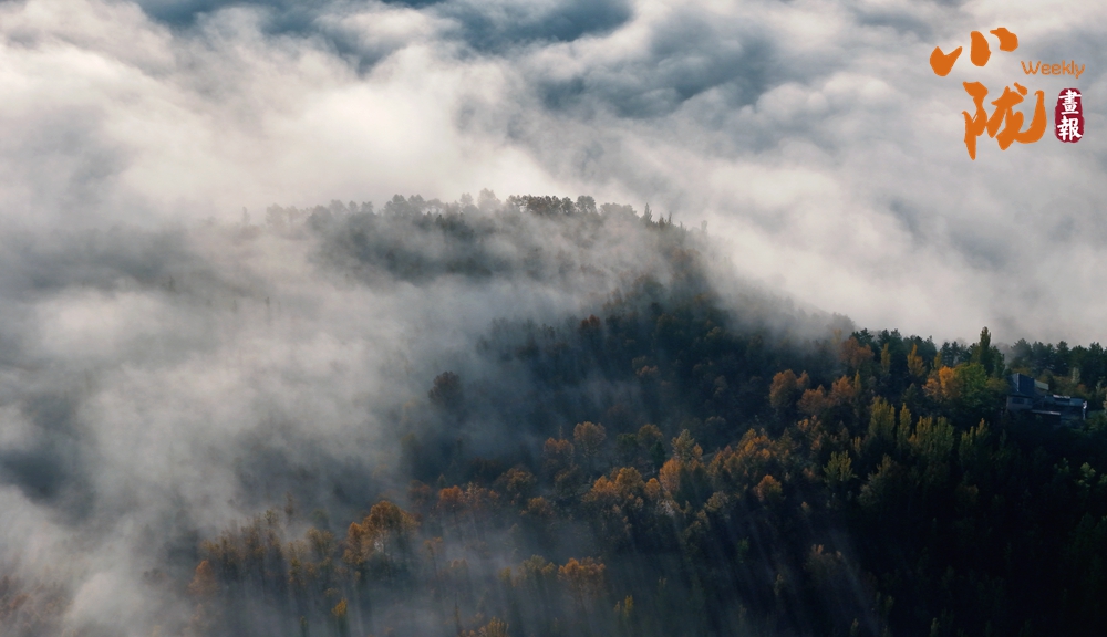 山林深處,秋意更濃。滿山遍野的銀杏葉換上了金黃的盛裝,宛如油畫般絢麗多彩。輕盈的云霧在山谷間流動(dòng),如同輕紗般籠罩著山巒,陽光斜灑其上,宛如一片金色的海洋。