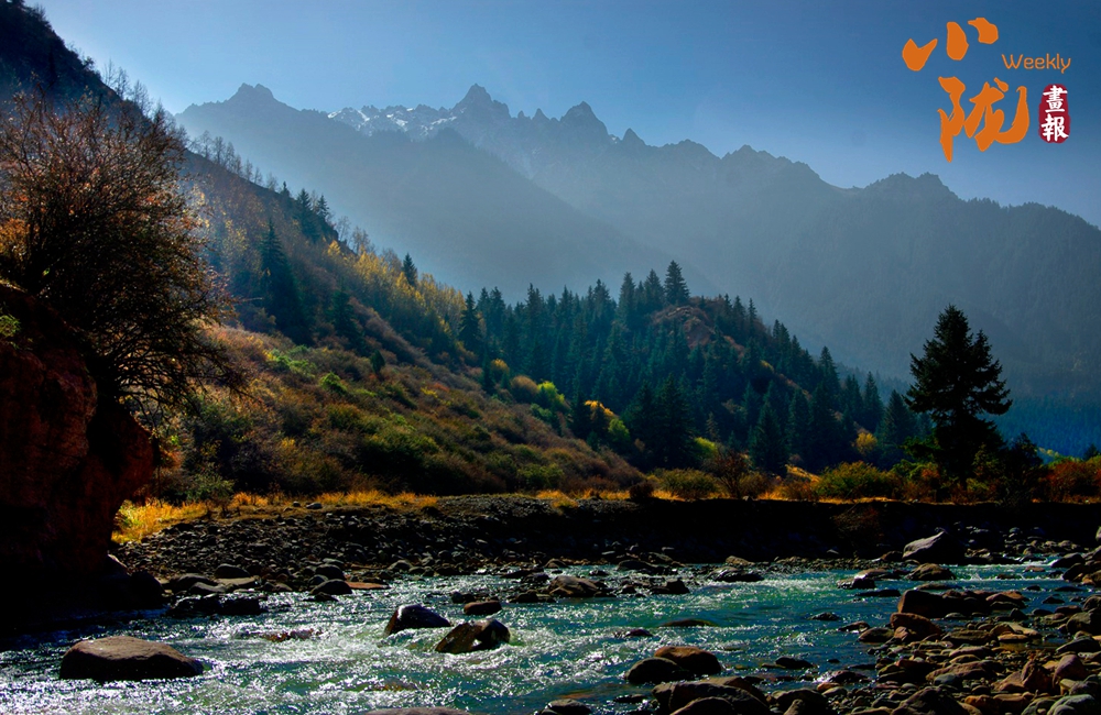 河水如鏡,溪流潺潺,天空澄碧,遠山在云霧中若影若現(xiàn),與那些染上金黃、橙紅的樹木相互映襯,共同繪制成一幅光影交織、動靜相宜的秋日圖景。