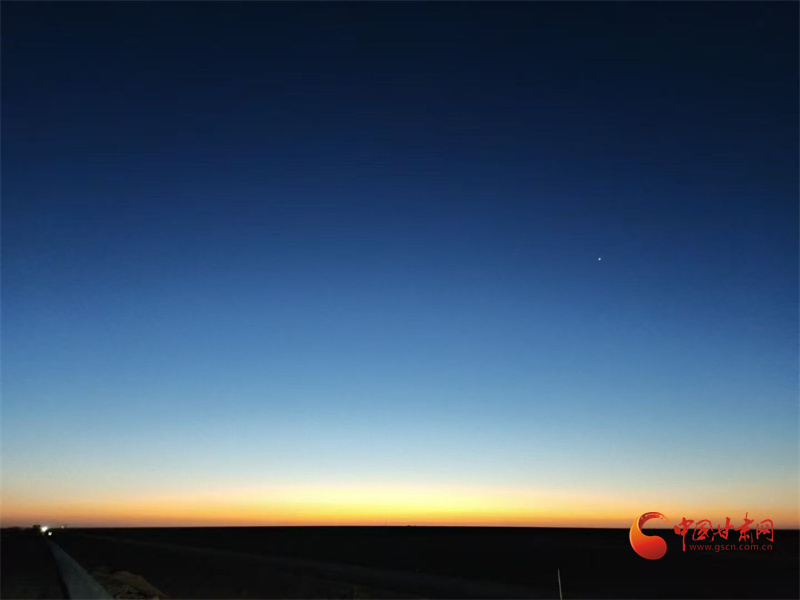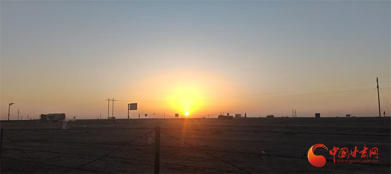 李志虎手機珍藏了許多日出、日落的影像,這是他們早出晚歸看到“大漠孤煙直,長河落日圓”美景的見證,也正是這日復一日的努力,讓肅航公路在戈壁延伸。