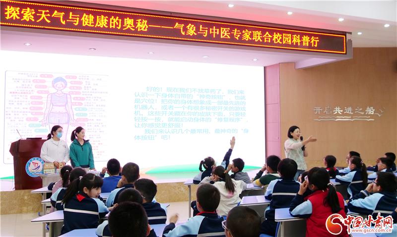 中國甘肅網(wǎng)11月6日訊(西北角·中國甘肅網(wǎng)記者 程?。┤涨?,蘭州市城關(guān)區(qū)一只船小學(xué)迎來了一場(chǎng)別開生面的科普盛宴:中醫(yī)專家與氣象工程師攜手走進(jìn)校園,以“探索天氣與健康的奧秘”為主題,為孩子們帶來了一堂融合氣象科學(xué)與中醫(yī)智慧的啟蒙課。