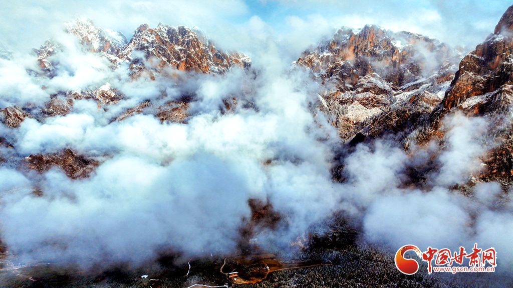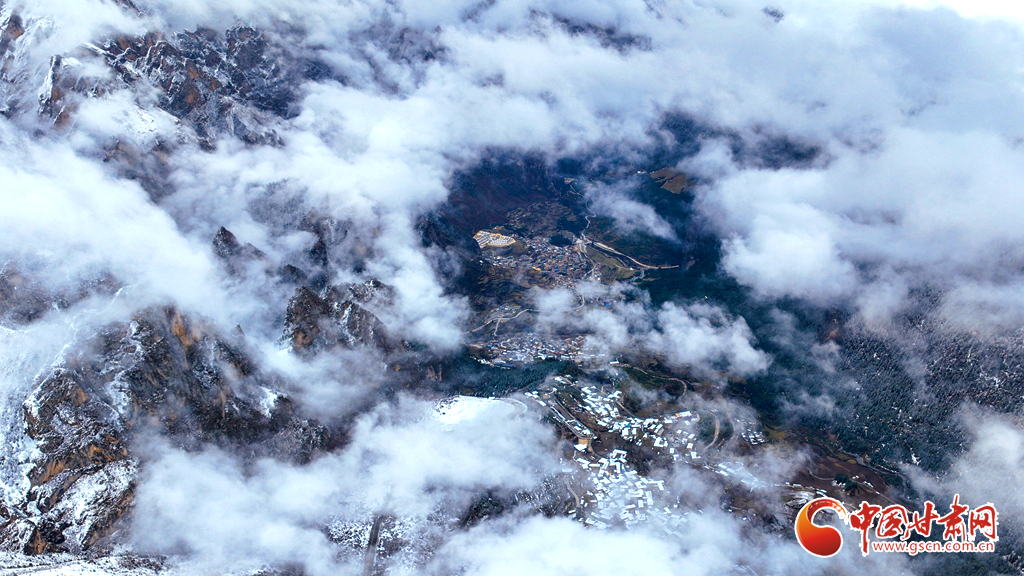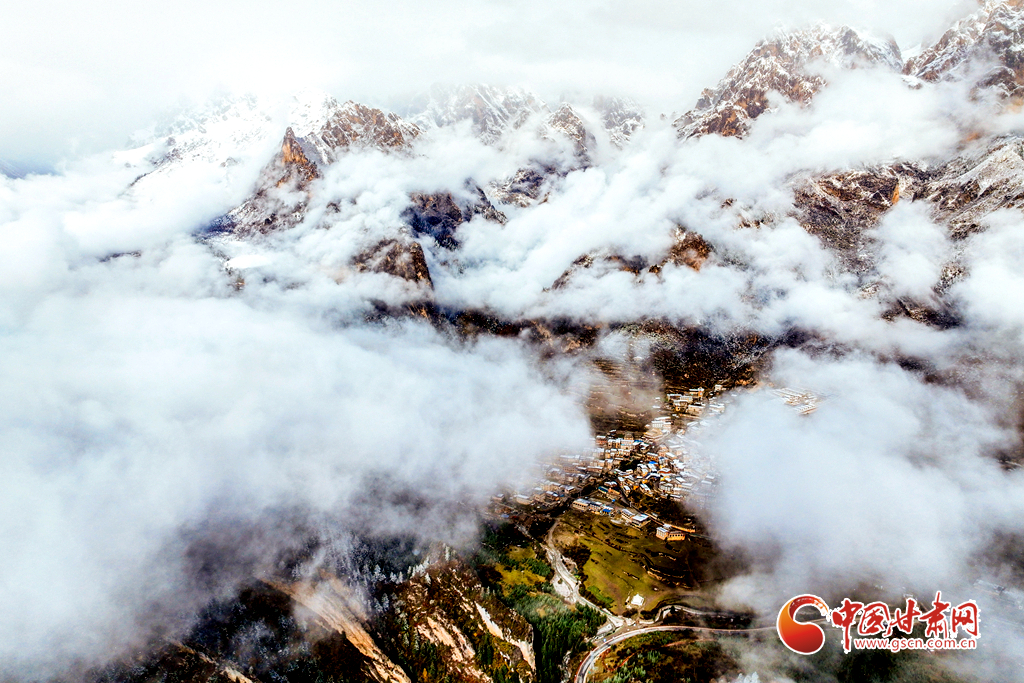 11月9日,雪后的甘南州迭部縣扎尕那景區(qū)銀裝素裹,云霧繚繞。巍峨山峰覆上新雪,古樸藏寨靜臥于皚皚雪野之間,嶙峋石林與繚繞云霧相映成趣,勾勒出一幅靜謐壯麗的高原冬日畫卷。