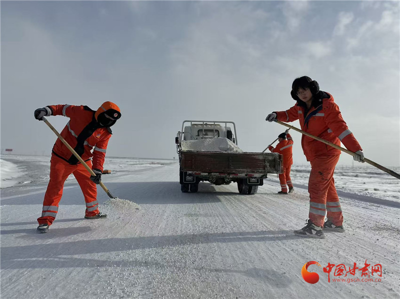 酒泉瓜州:公路人冒著嚴(yán)寒除雪鏟冰保暢通