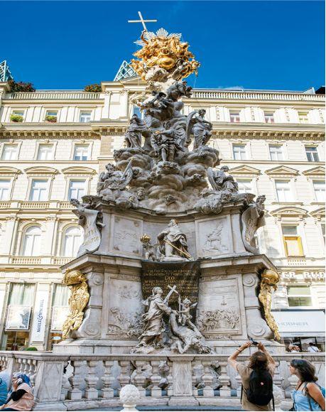 被稱為黑死病的瘟疫使得歐洲2500萬人喪命。圖為位于奧地利首都維也納最繁華的格拉本大街的黑死病紀念柱。袁亞新/攝
